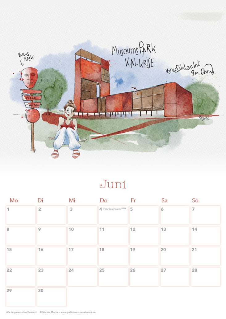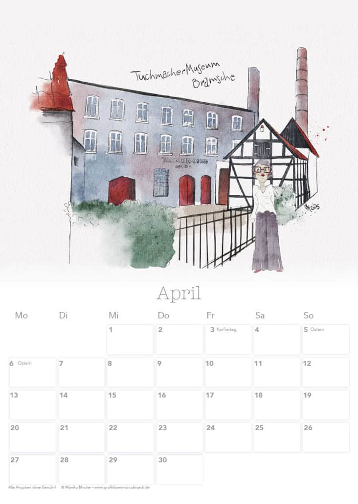 Seit einigen Jahren zeichne ich Orte in und um Osnabrück, die mir besonders gefallen. Daraus entsteht jedes Jahr ein Osnabrück-Kalender zu einem besonderen Thema. Für das nächste Jahr habe ich Museen in und um Osnabrück gezeichnet.