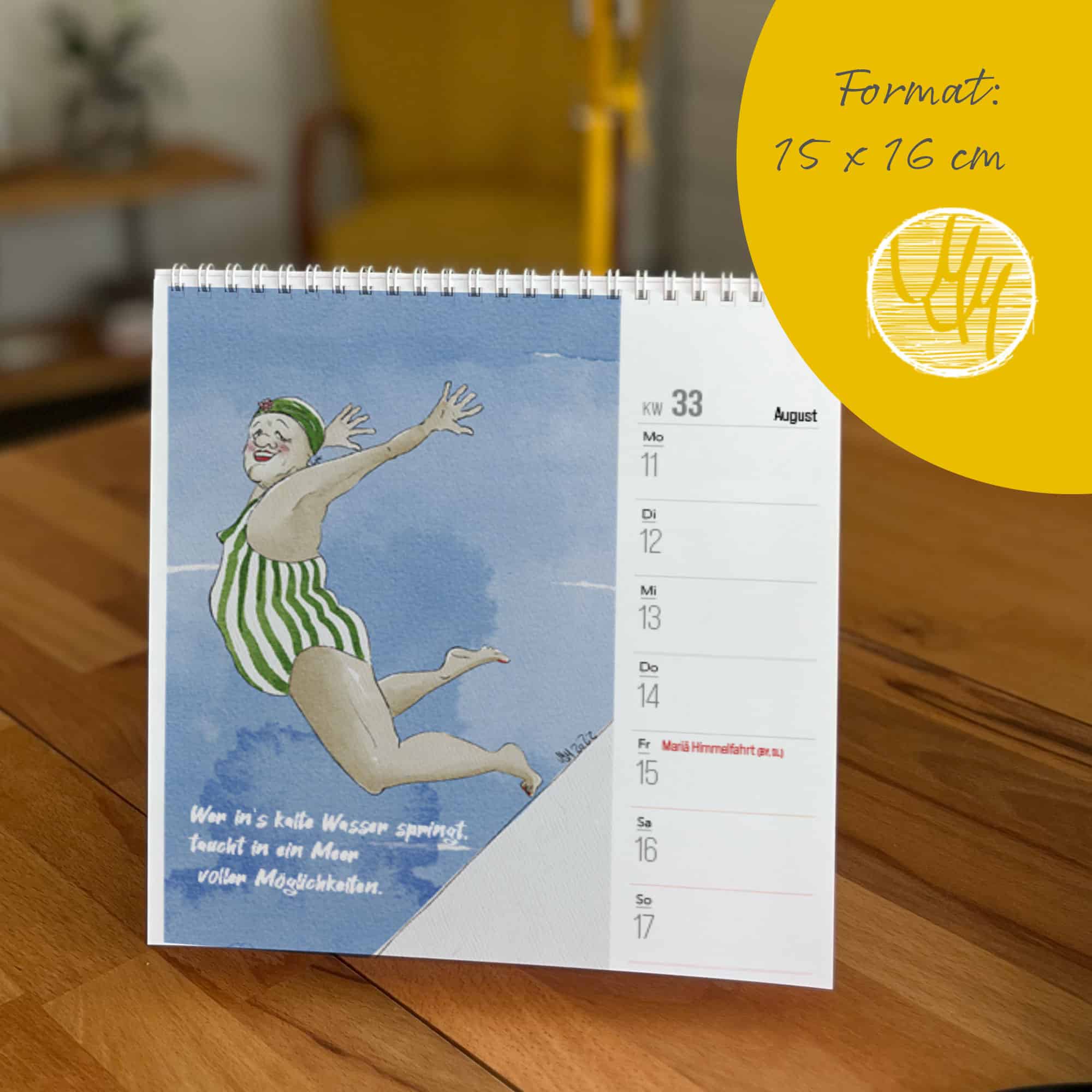 Ansicht eines Kalenderblattes mit einer Ins Wasser springenden Frau